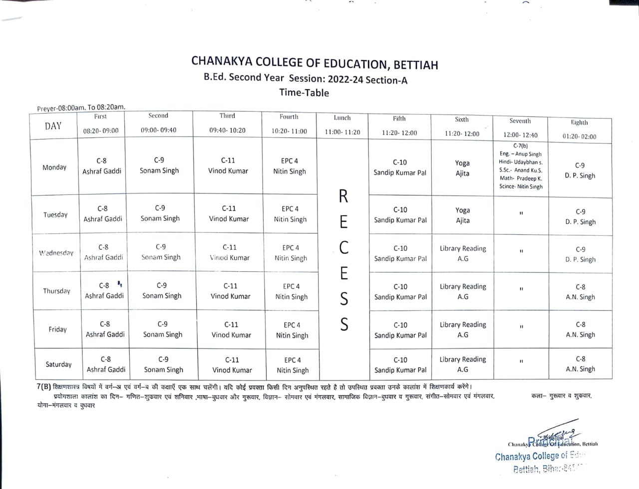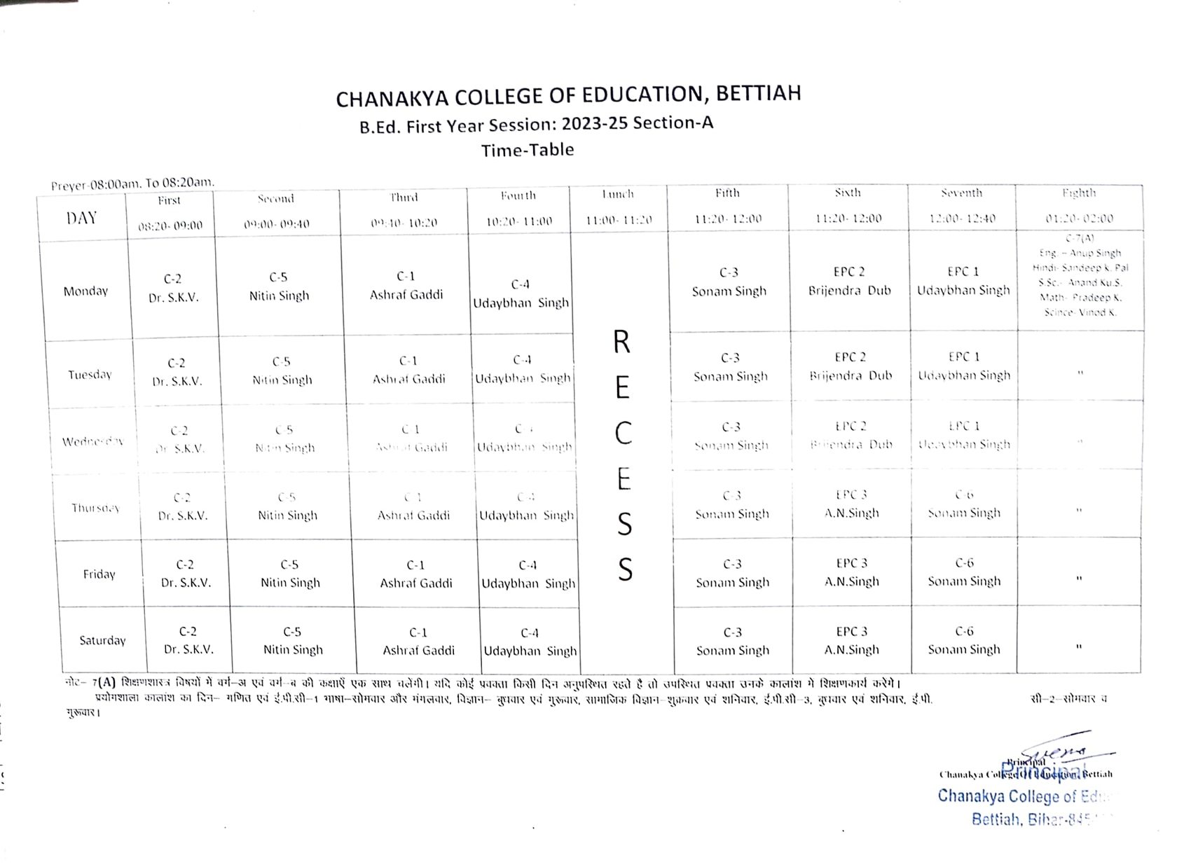 Section - AB.Ed First Year (2023-25) Time Table dtd:19/01/2024