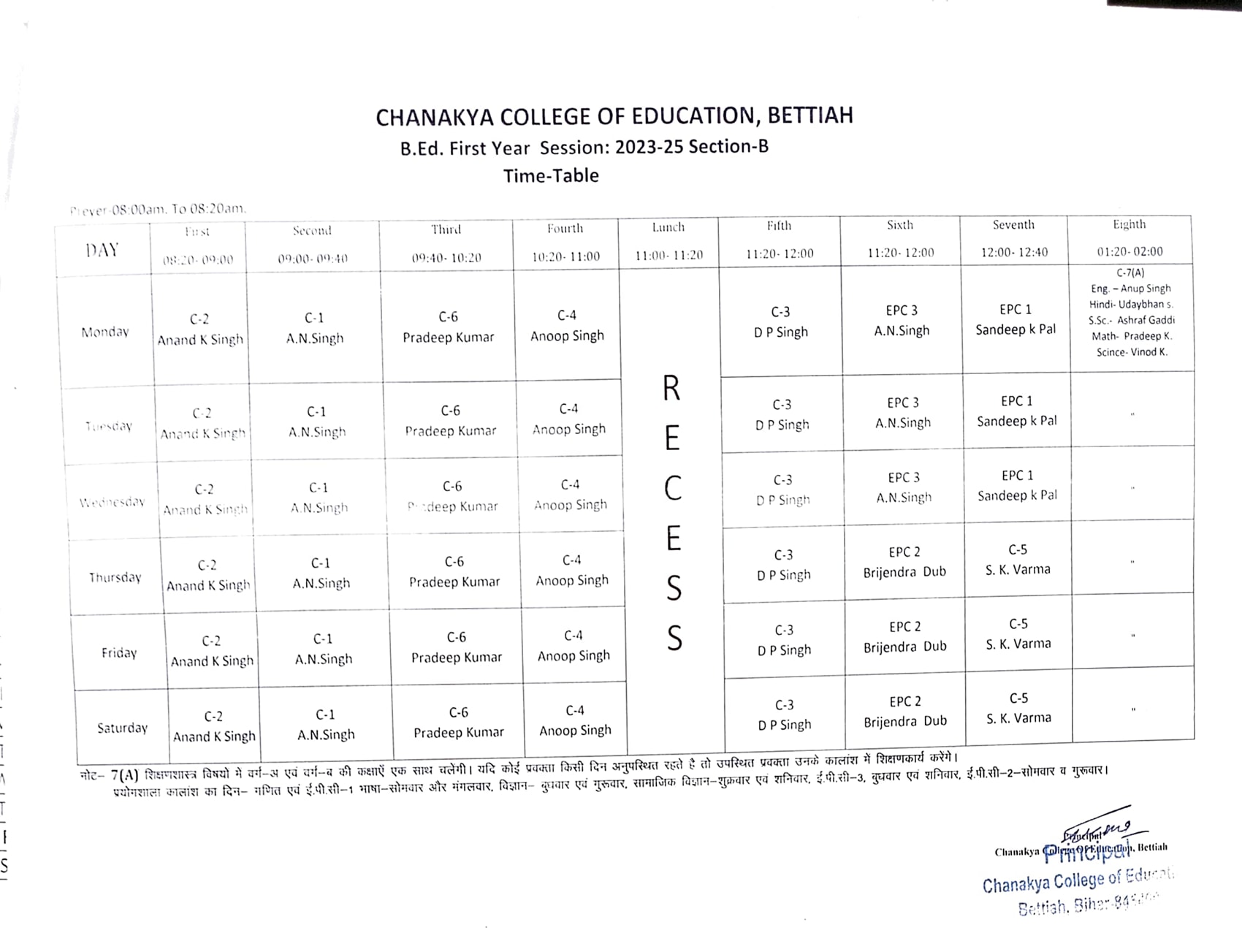 B.Ed First Year (2023-25) Time Table dtd:19/01/2024